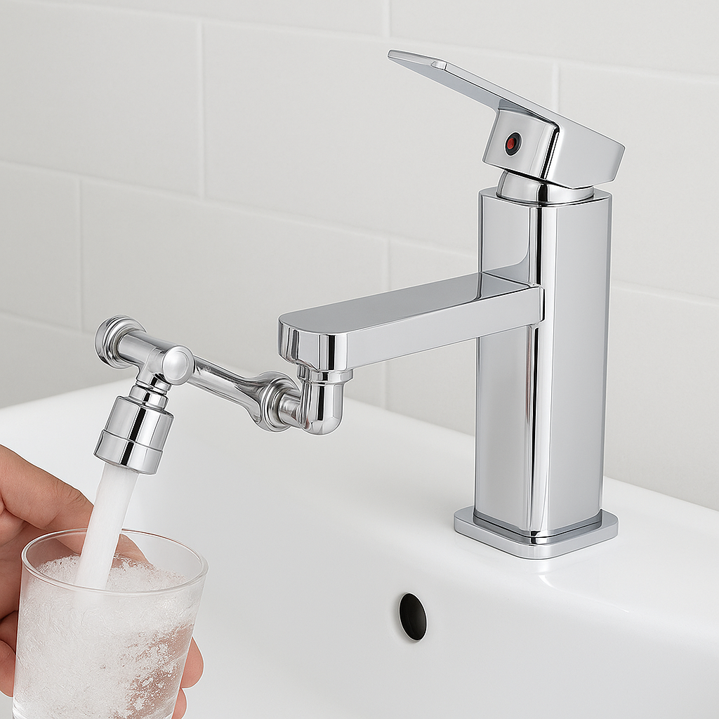 1080° maišytuvo prailgintuvas – tai praktiškas sprendimas kiekvienai virtuvei ar voniai. Jo lankstus dizainas leidžia pasukti vandens srautą bet kuria kryptimi – aukštyn, žemyn ar į šonus. Dėl šios priežasties kriauklės plovimas tampa daug greitesnis, o rankų ar veido patogesnis