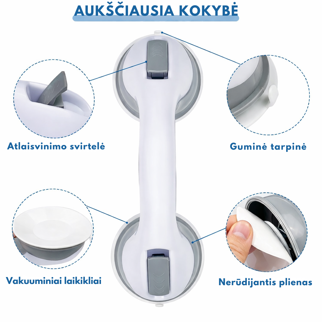 Rankeną galite naudoti tiek pagalbai išlipant iš dušo ar vonios, atsistojant nuo tualeto ar naudoti kaip durų rankenos alternatyvą.