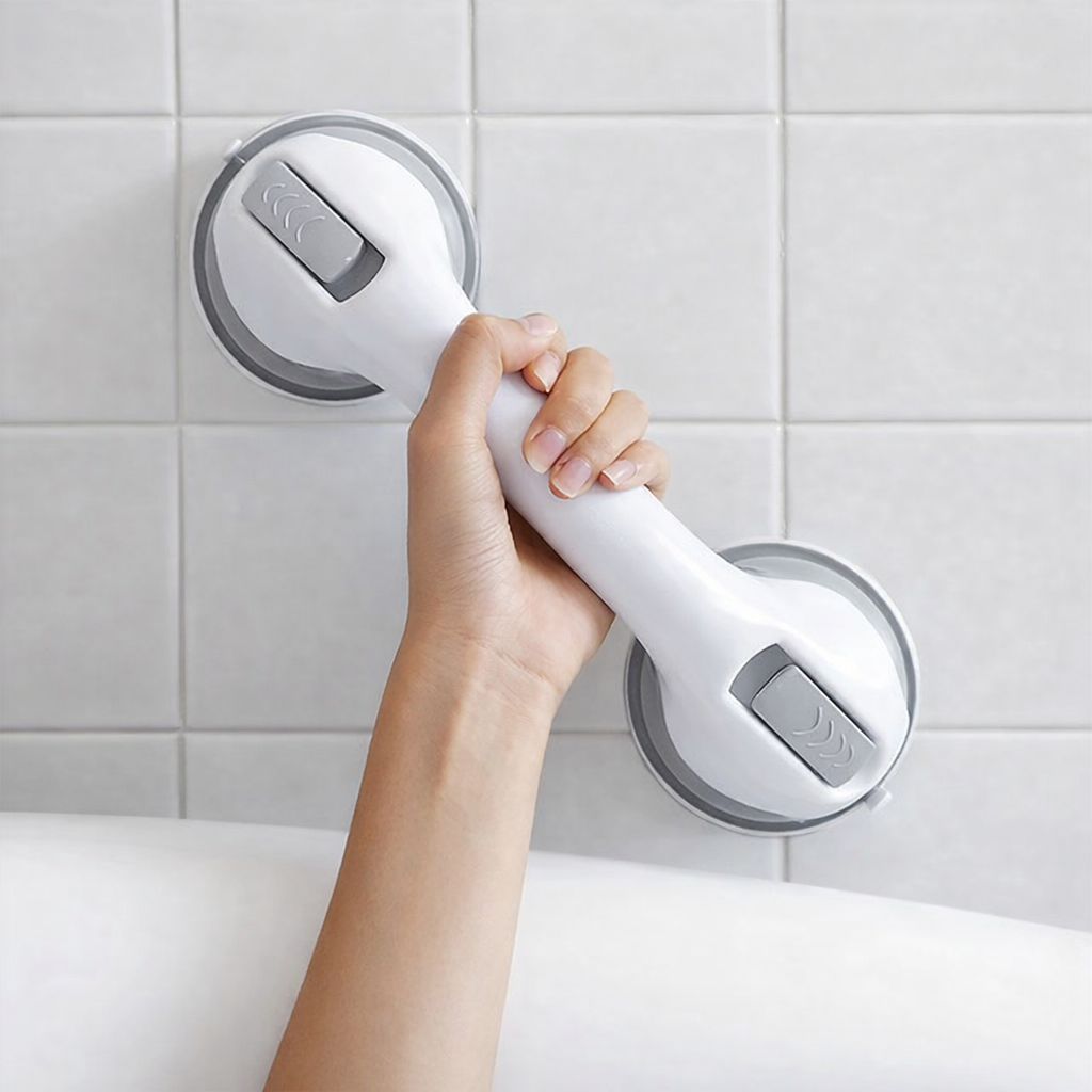 Itin stiprūs vakuuminiai laikikliai patikimai prisitvirtina prie bet kokio lygaus paviršiaus – plytelių, stiklo, veidrodžio ar plastiko. Rankeną galima lengvai nuimti ir perkelti į kitą vietą vos pakėlus fiksavimo svirteles – be gręžimo, be klijų ir be žymių ant sienos.
